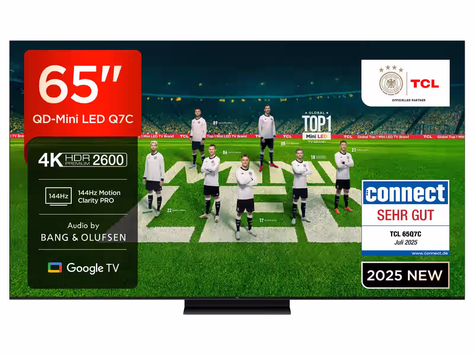 TCL 65Q7C QLED Mini LED Fernseher, 65 Zoll, 4K HDR Premium, Dolby Vision IQ & Atmos, Smart TV mit Google TV, 6.2.2 Sound, 144Hz VRR, AMD FreeSync Premium Pro, HDMI 2.1, AirPlay 2